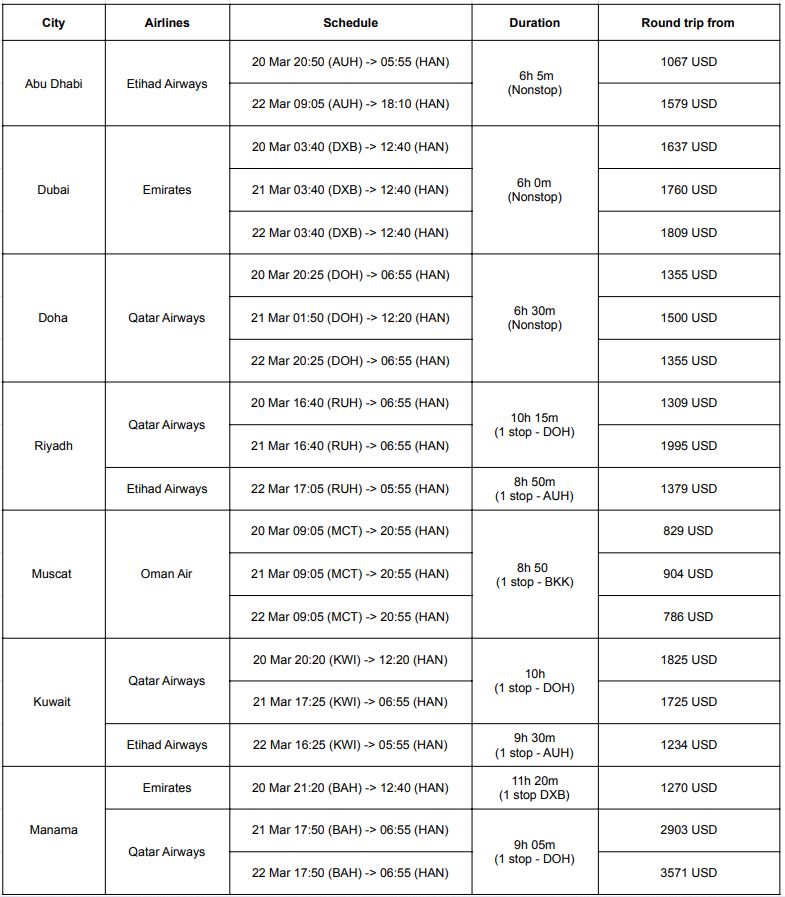 GCC – Vietnam Flight Overview